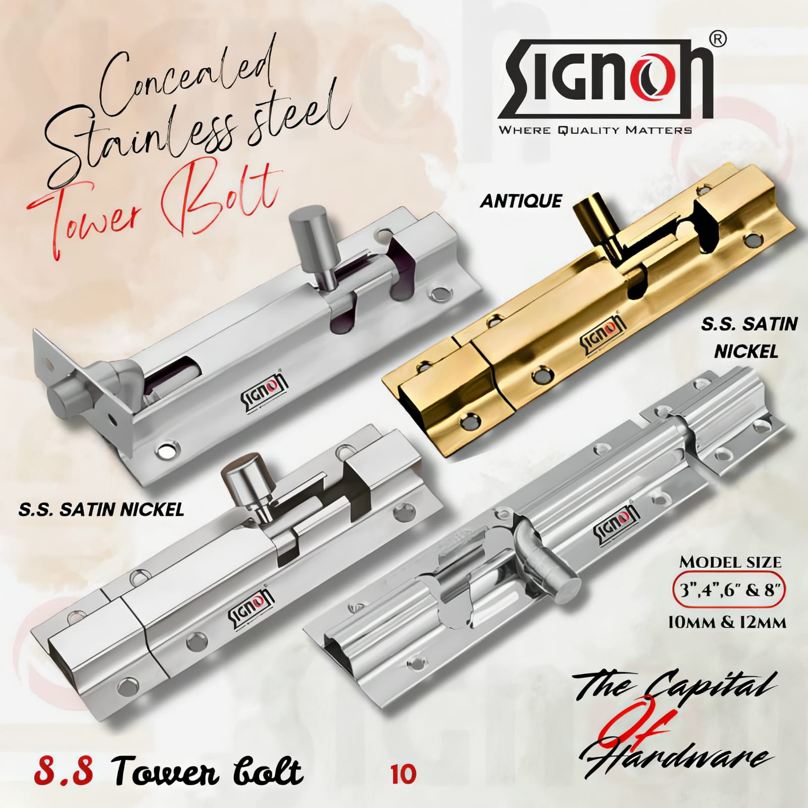 MATERIAL – STAINLES STEEL TYPES – 12mm PACKING – MULTI PCS. / SINGLE PCS. SIZE IN MODEL – 4″+1″ TO 8″+1″